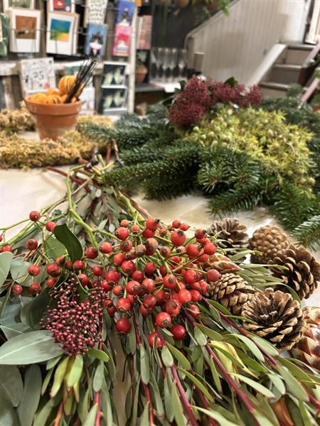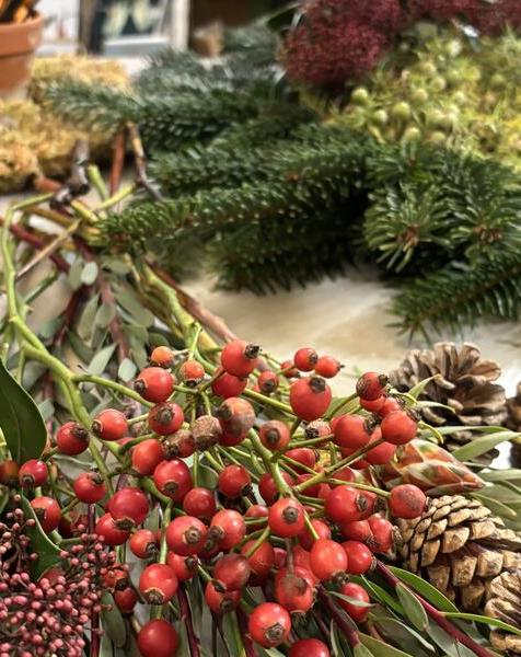 We will be using the most beautiful amazing natural textures of all the Christmas foliage we use for our wreath workshops, so for people that book in for both workshops each design with complement each other.