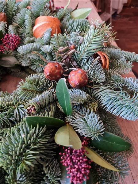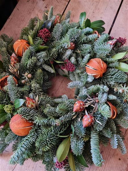 All kits will include a mossed wreath, Blue pine, Cones, Beautiful Sustainable Christmas foliage, wires, twine and ribbon or raffia.