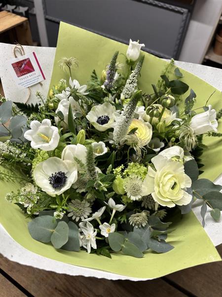 Leap into Spring with this fabulous white Spring design filled with a beautiful collection of White Spring flowers and seasonal foliages, Designed by the Team at Floral Touch Bath and available for delivery In Bath and surrounding areas