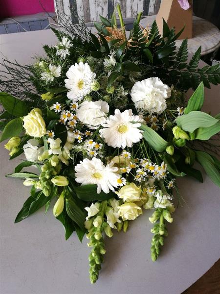 A beautiful very natural garden style tied sheaf. Colours can be changed depending on your requirements.